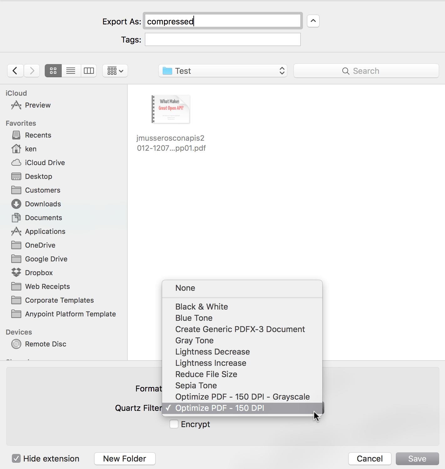 At this point, you now have a ready Quartz filter you can use with Preview! But if you want to create more filters, keep repeating the steps above and configure different compression and optimisation options based on your needs. For me, I simply created a Color and Grayscale version of the filter above.